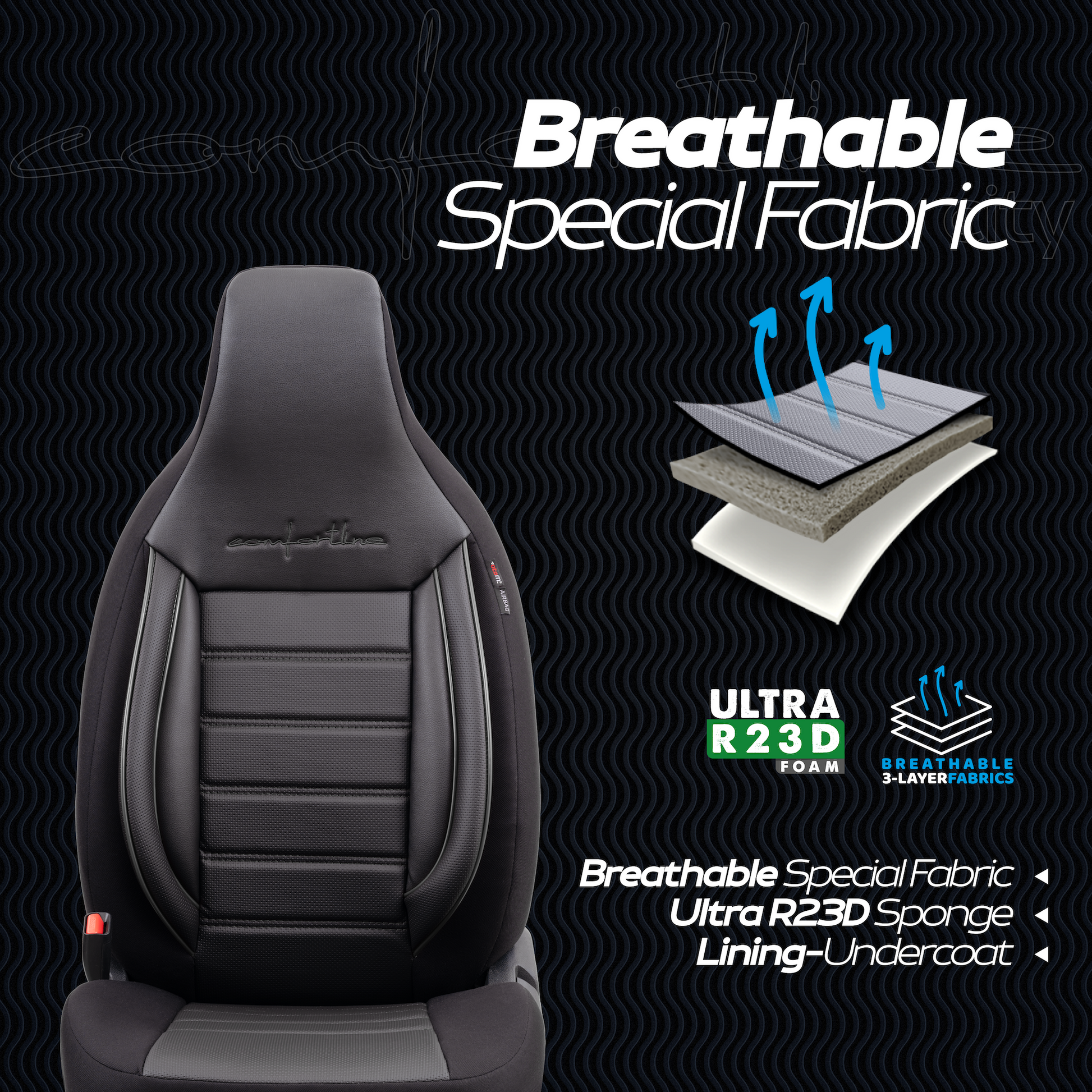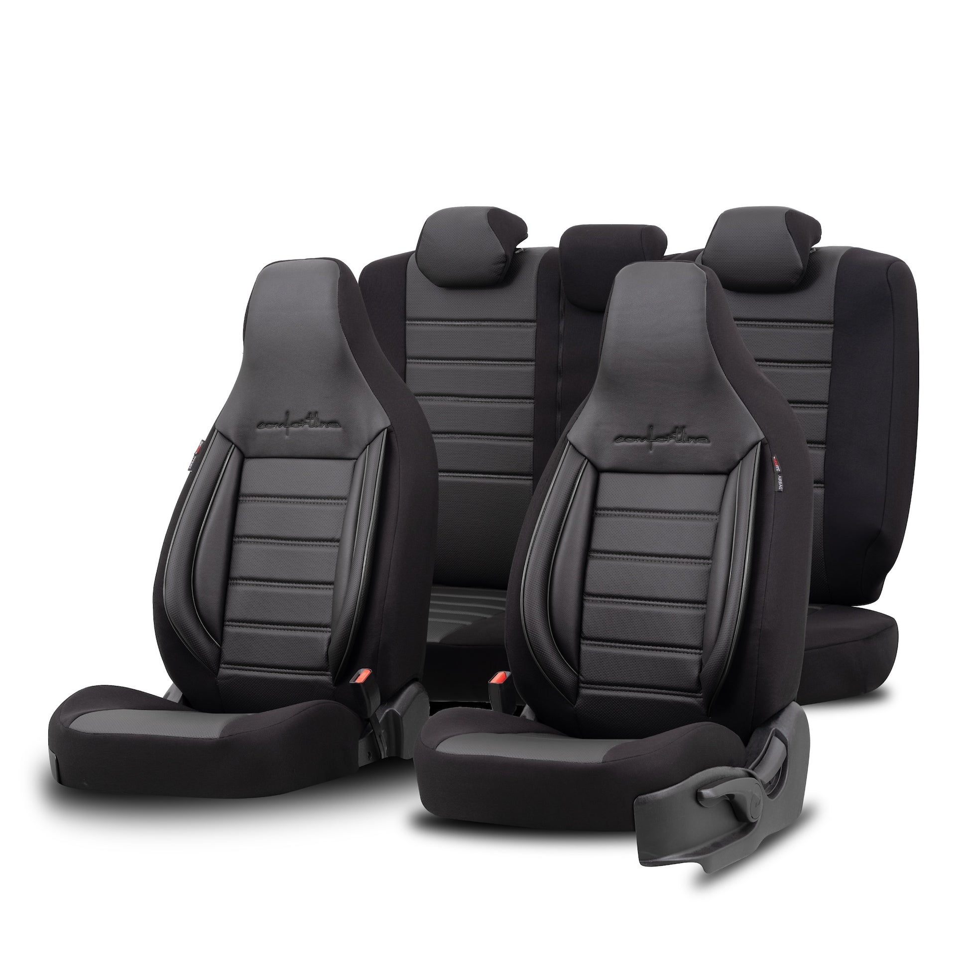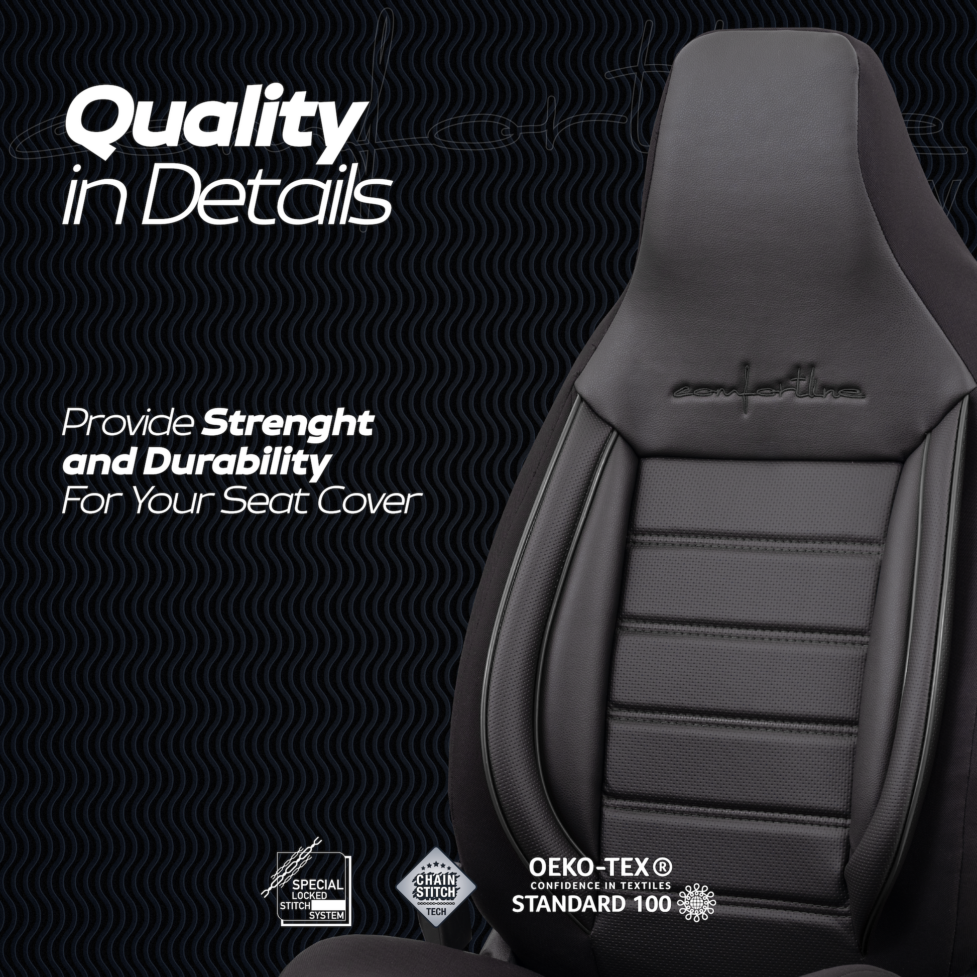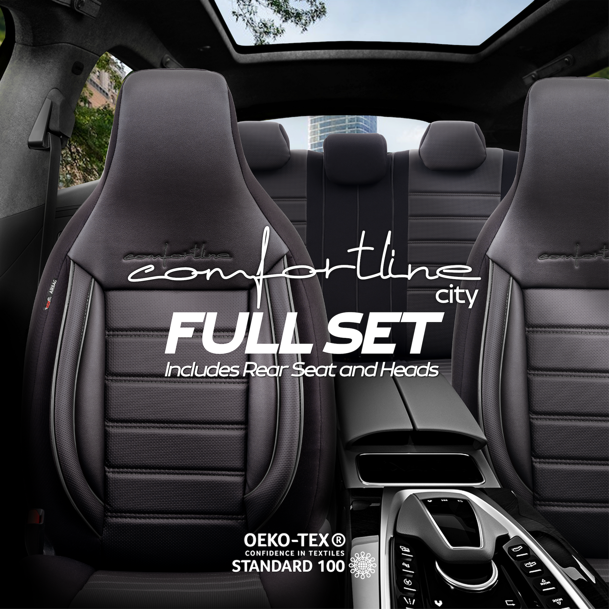 Комплект Тапицерия Comfortline City – Черно, с Еко кожа, за Предни и Задни Седалки (За малки градски автомобили)