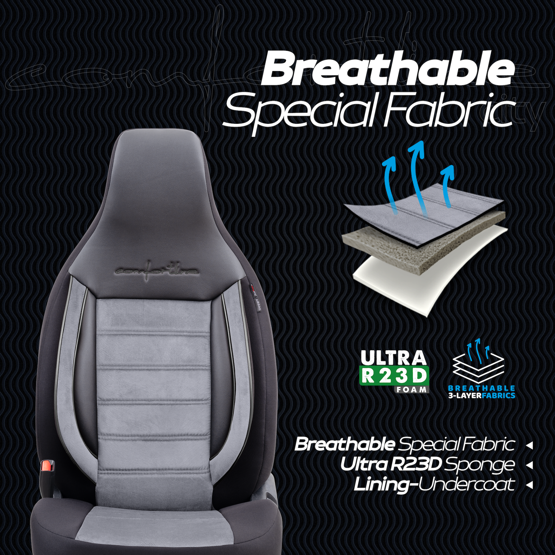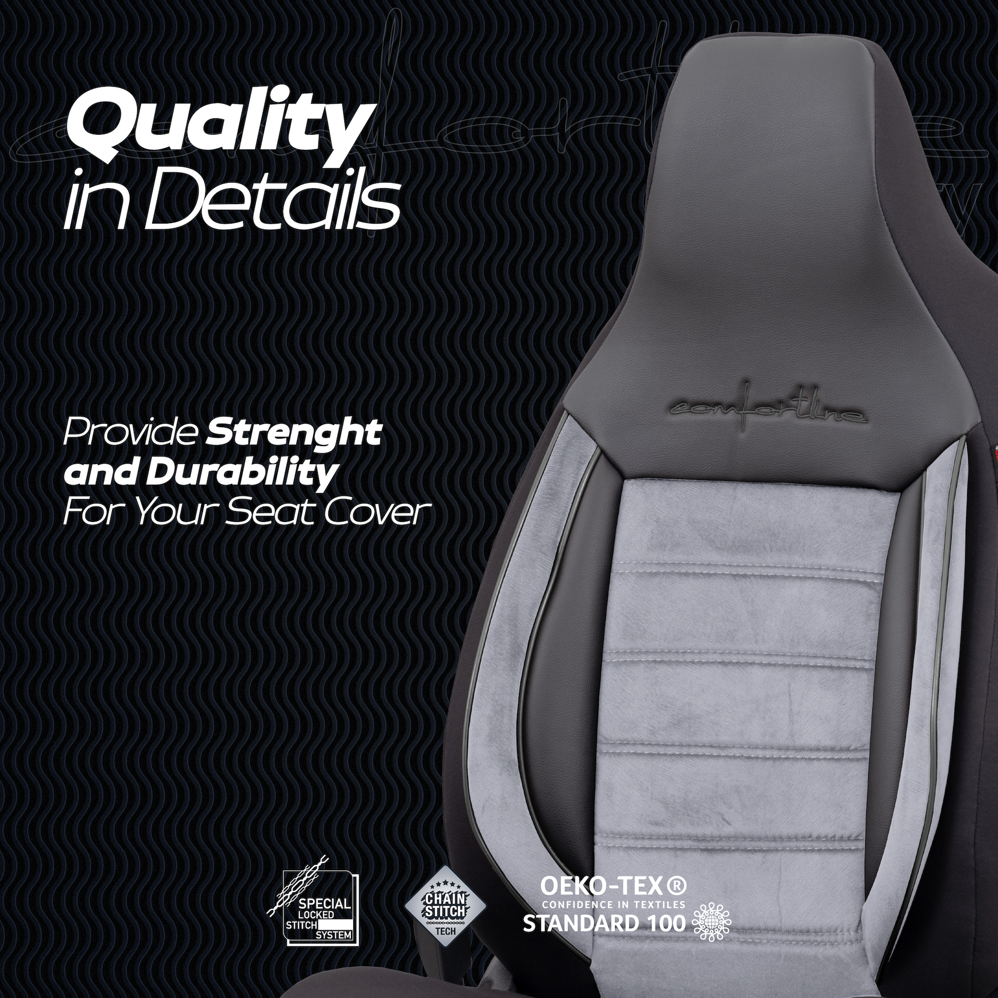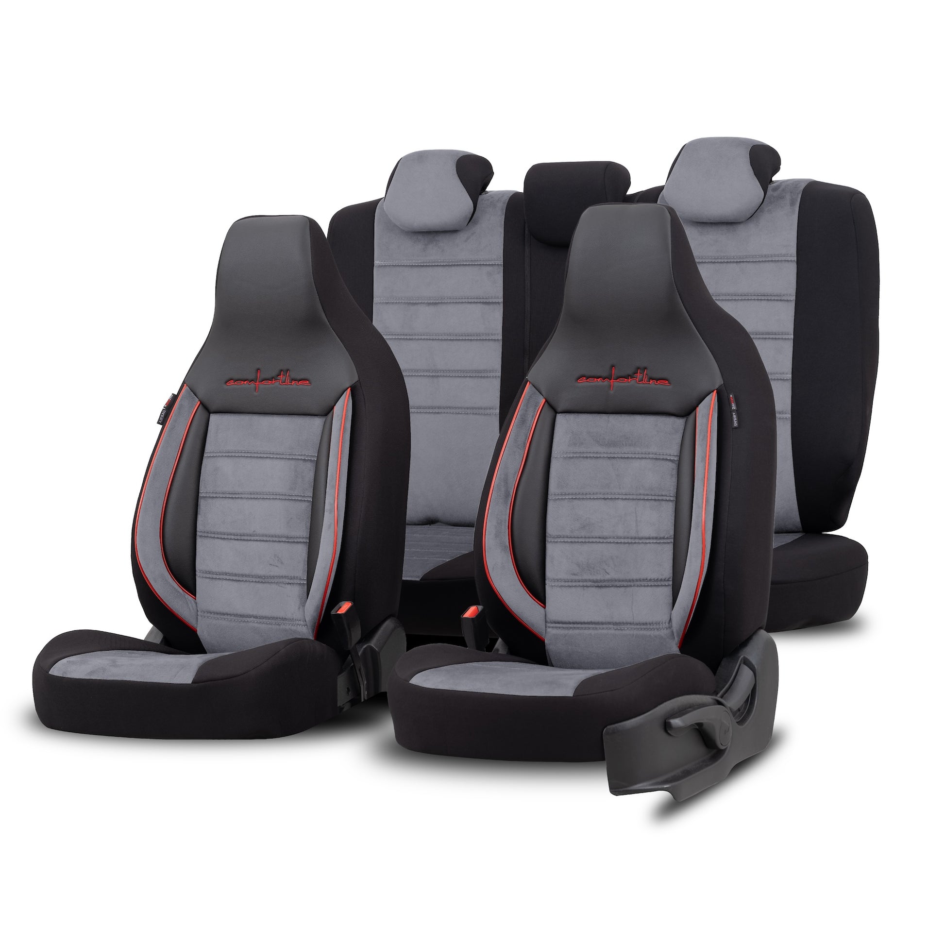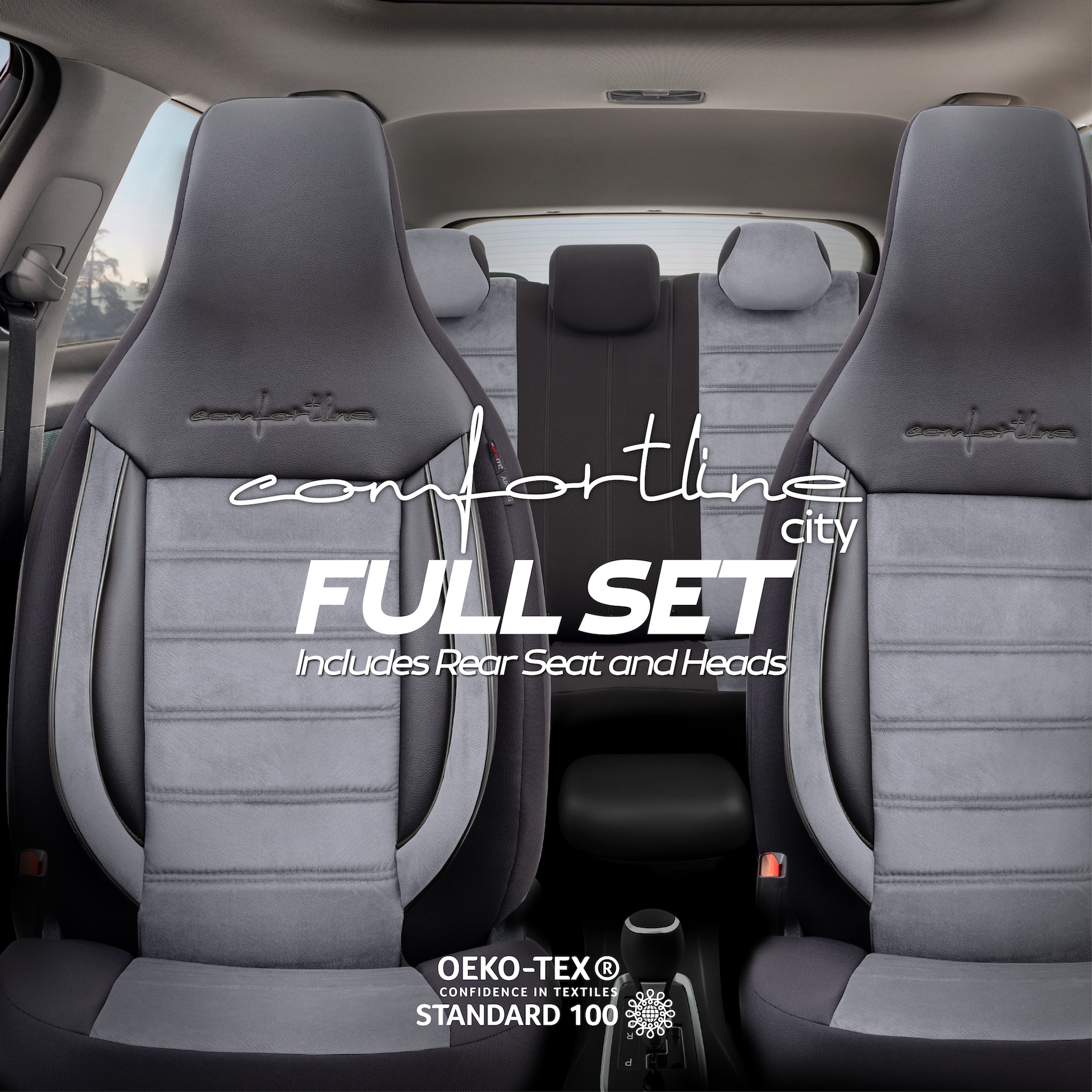 Комплект Тапицерия Comfortline City – Черно/Сиво, с Алкантара, за Предни и Задни Седалки (За малки градски автомобили)