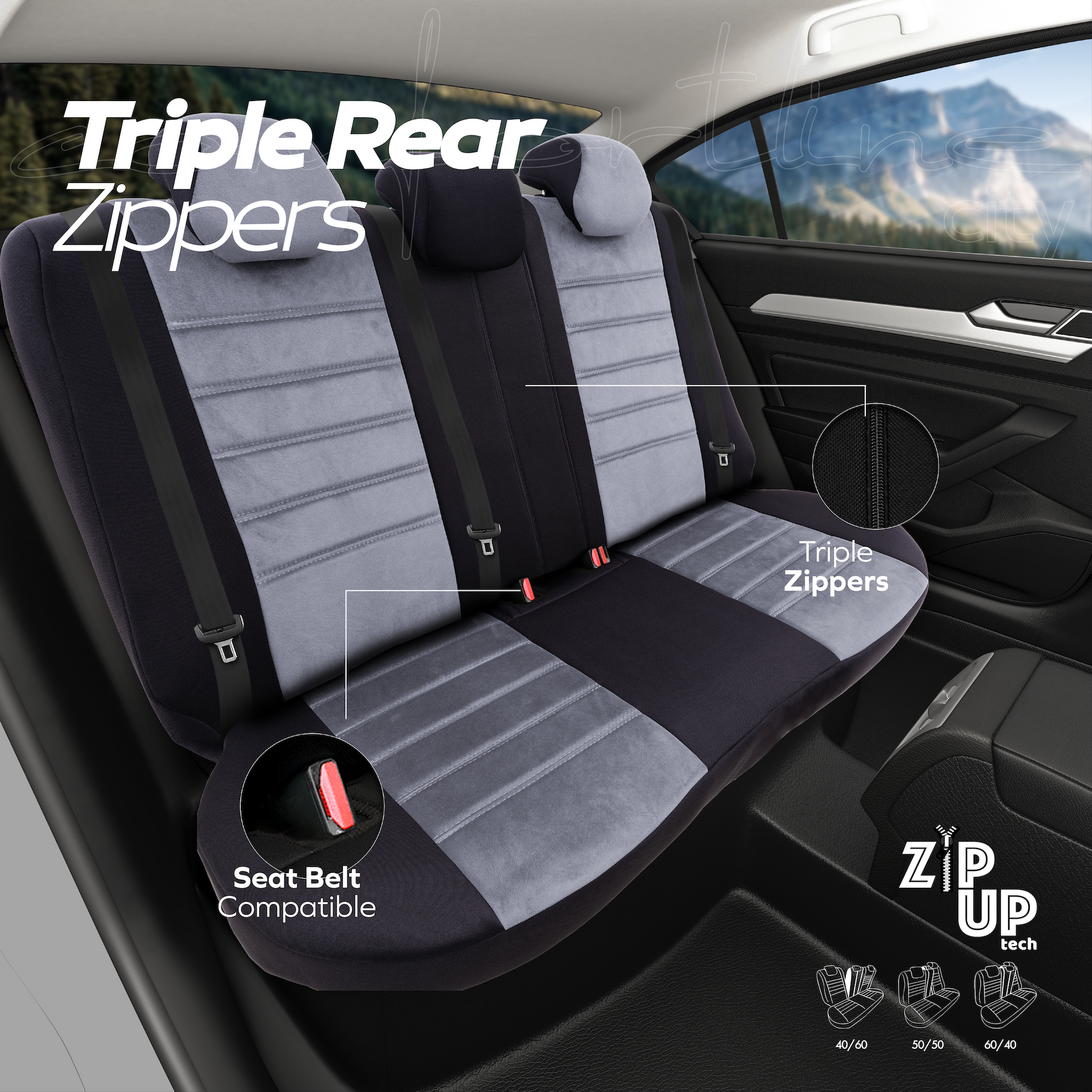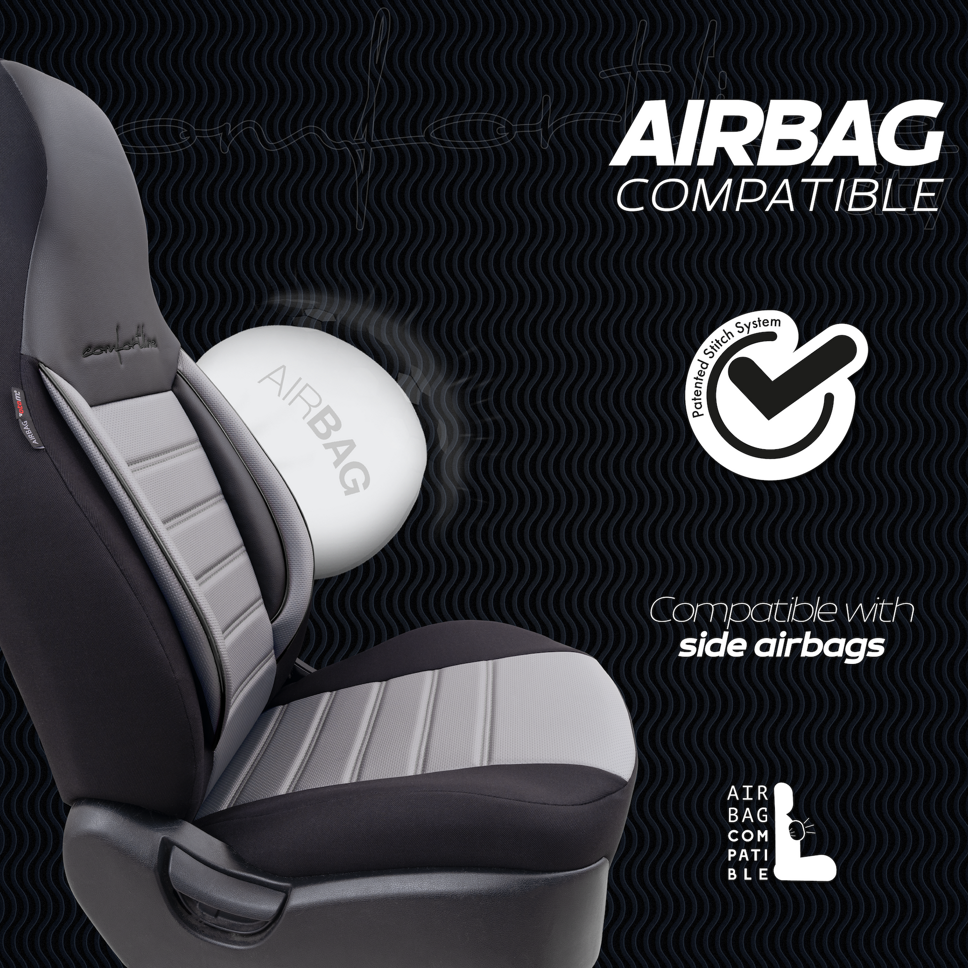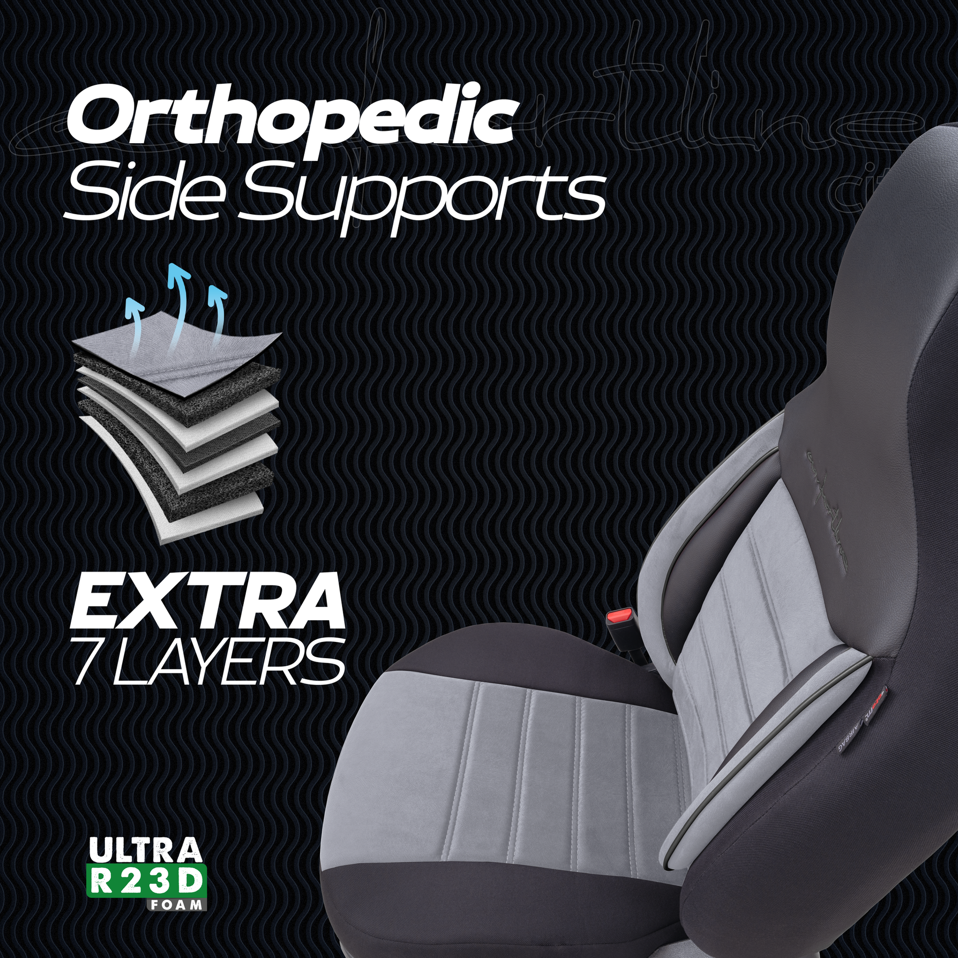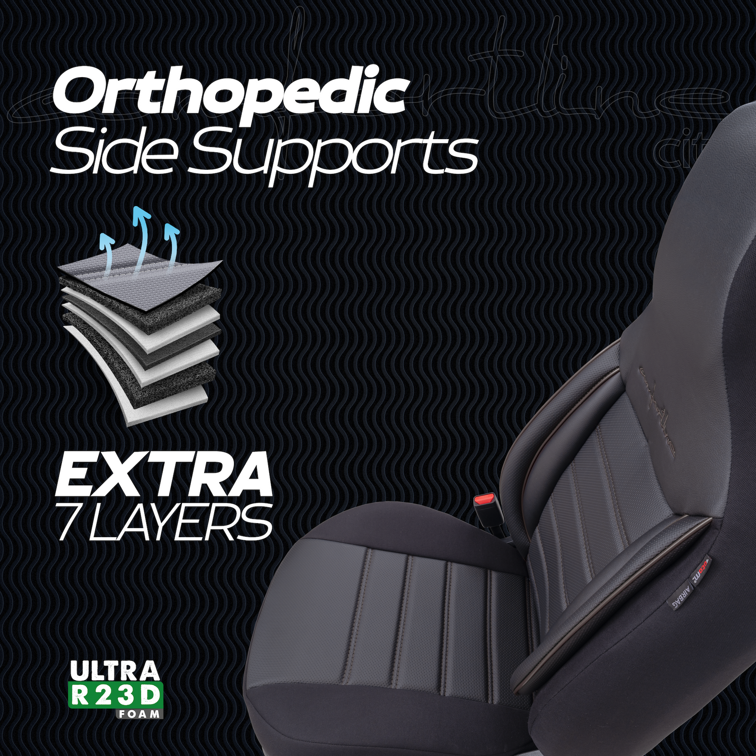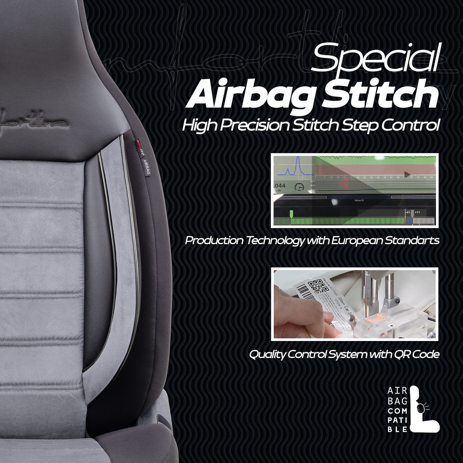 Комплект Тапицерия Comfortline City – Черно/Сиво, с Алкантара, за Предни и Задни Седалки (За малки градски автомобили)