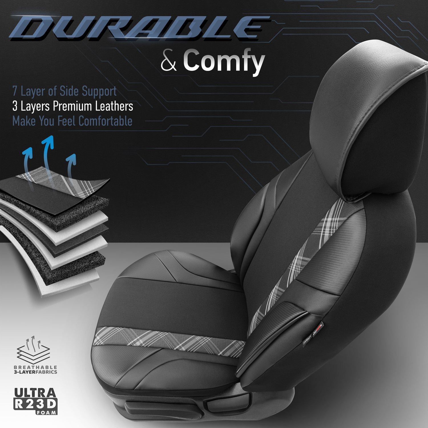 Нашите тапицерии са проектирани с еластична конструкция, която се движи заедно със седалката при регулиране, без да ограничава движението или да създава дискомфорт. Всички елементи за закрепване са поставени така, че да не пречат на механизмите за регулиране.