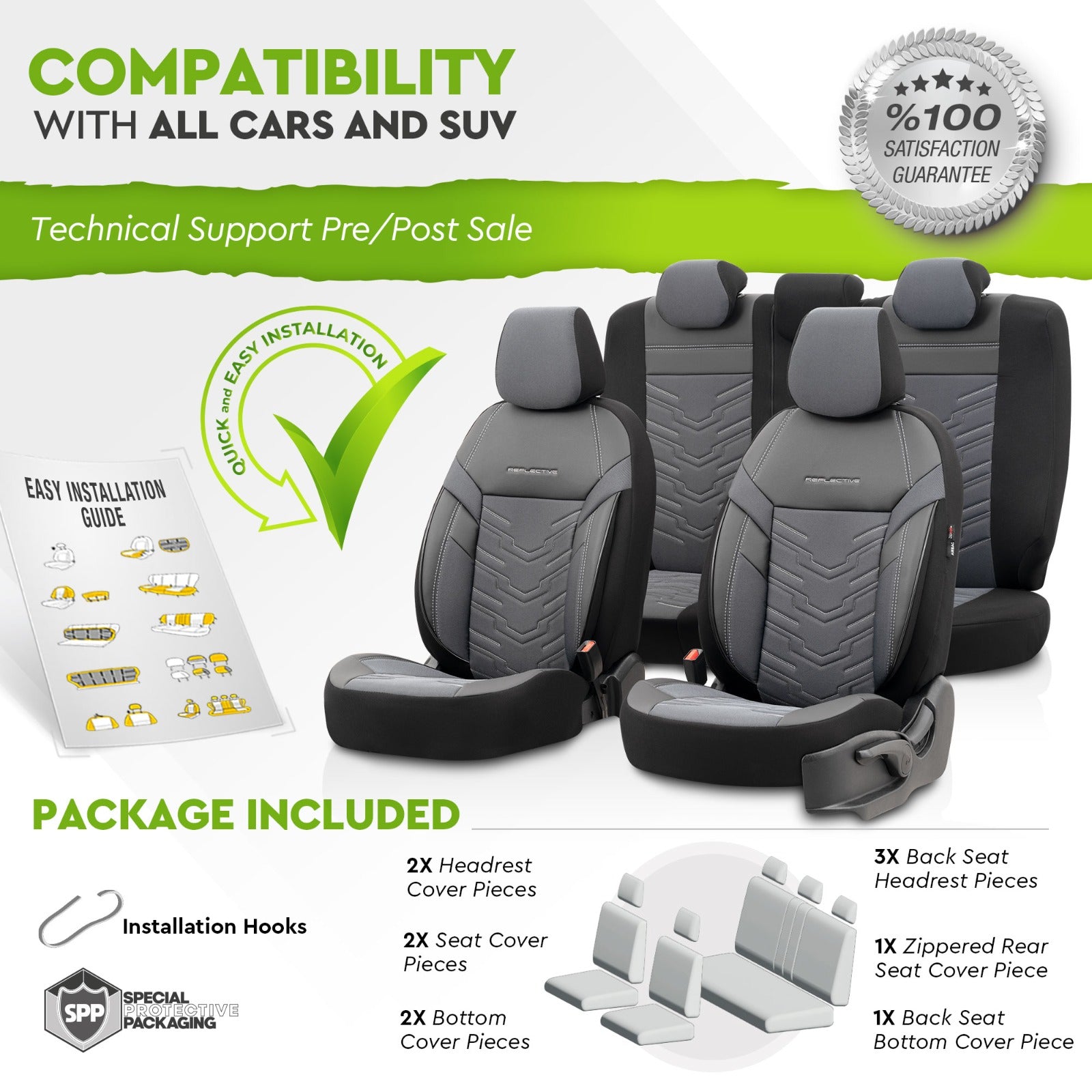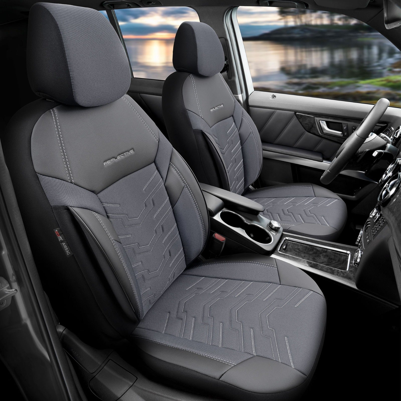 Комплект Тапицерия Reflective – Сиво, Текстил с Еко кожа, за Предни и Задни Седалки